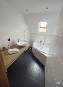 Byt o celkové ploše 79,4 m² prošel velmi zdařilou a citlivou rekonstrukcí. Podařilo se v něm dokonale propojit útulnou atmosféru klasického podkroví s požadavky na moderní a komfortní bydlení. Interiér působí maximálně vzdušně a díky ideální orientaci a střešním oknům je po celý den nádherně prosvětlený přirozeným světlem.